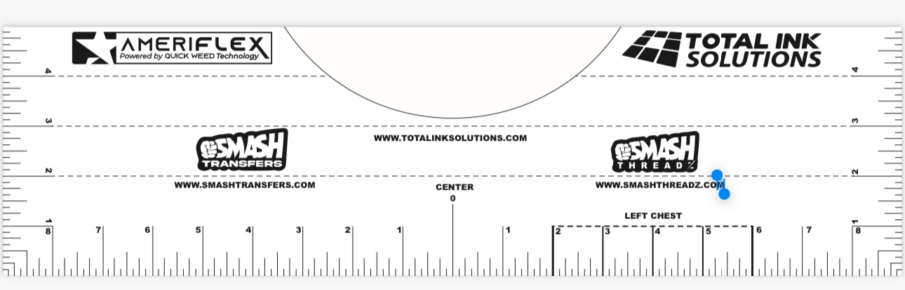 T-Shirt Alignment Ruler with Pocket, Neck, and Chest Guides – Featuring Ameriflex®, Smash Transfers®, and Total Ink Solutions® Branding